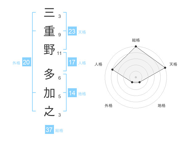 三重野 多加之さんを姓名の画数から五運を鑑定
