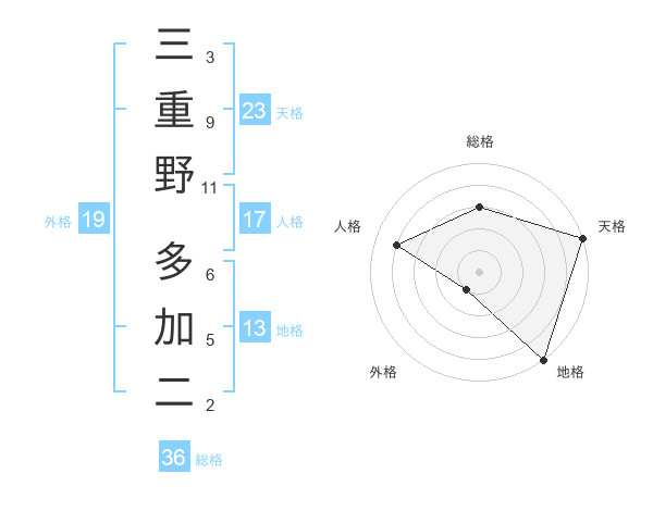 三重野 多加二さんを姓名の画数から五運を鑑定