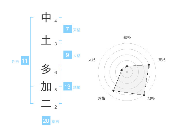中土 多加二さんの地格は13画の5点!