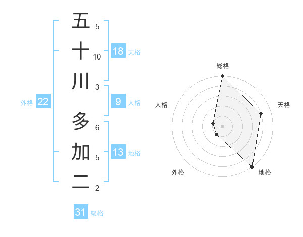 五十川 多加二さんを姓名の画数から五運を鑑定