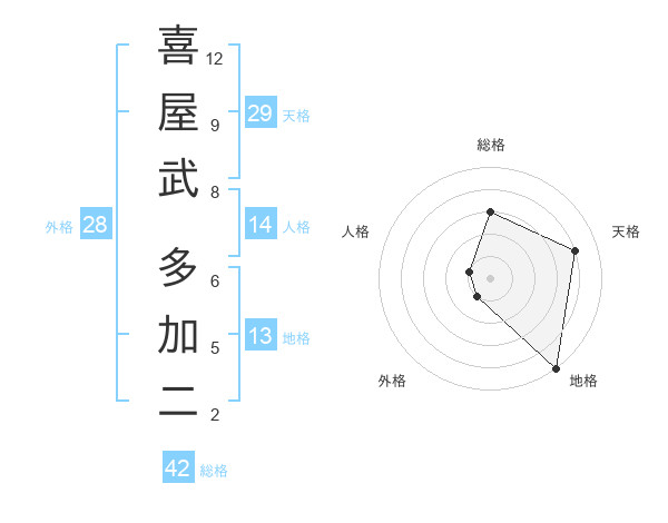喜屋武 多加二さんの総格は42画の3点!