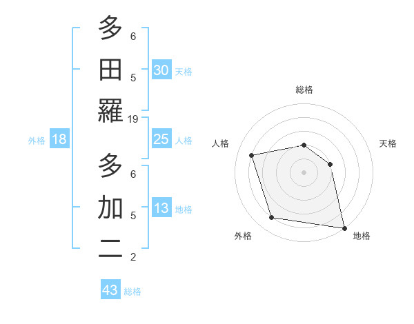 多田羅 多加二さんを姓名の画数から五運を鑑定