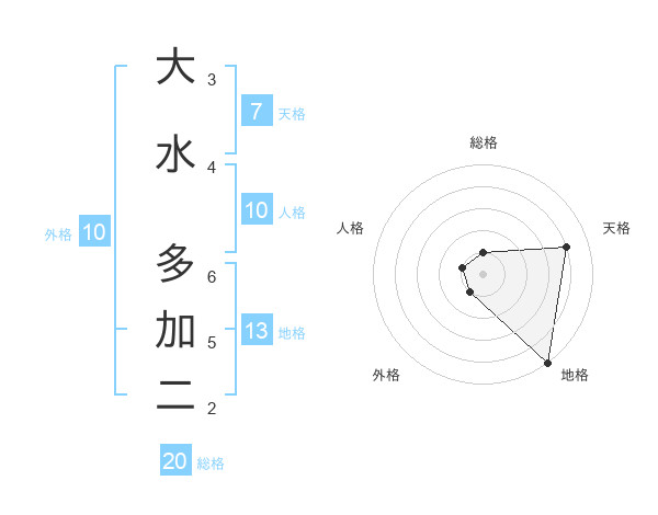 大水 多加二さんの総格は20画の1点!