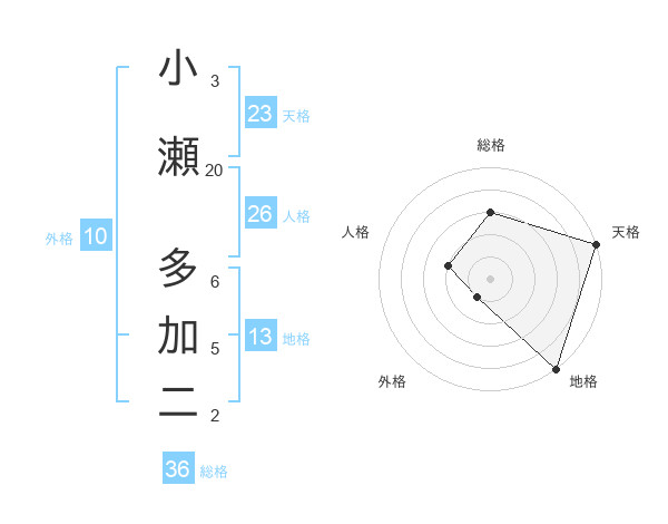 小瀬 多加二さんの総格は36画の3点!