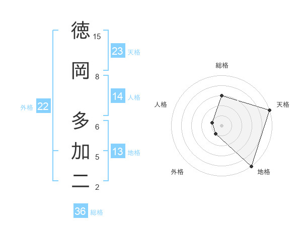 徳岡 多加二さんを姓名の画数から五運を鑑定