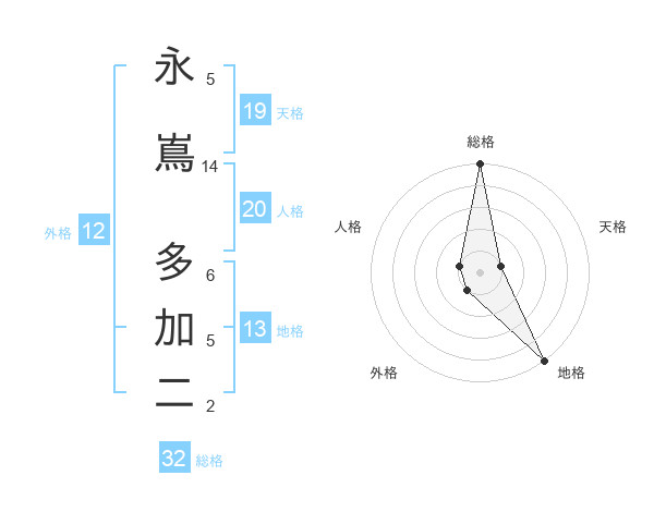 永嶌 多加二さんを姓名の画数から五運を鑑定