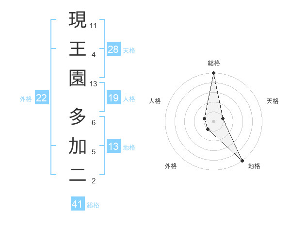 現王園 多加二さんを姓名の画数から五運を鑑定