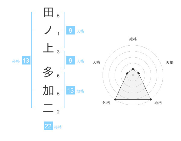 田ノ上 多加二さんを姓名の画数から五運を鑑定