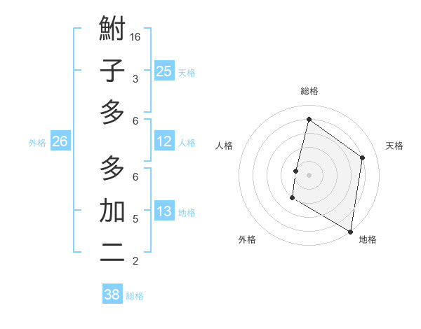 鮒子多 多加二さんを姓名の画数から五運を鑑定