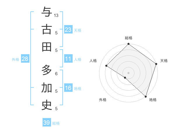 与古田 多加史さんを姓名の画数から五運を鑑定
