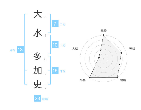 大水 多加史さんの外格は13画の5点!