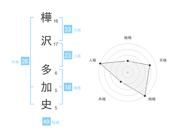 樺沢 多加史さんの天格は33画の4点!