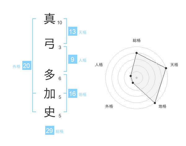 真弓 多加史さんの天格は13画の5点!