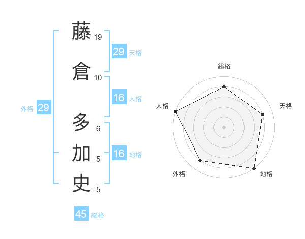 藤倉 多加史さんの総格は45画の4点!