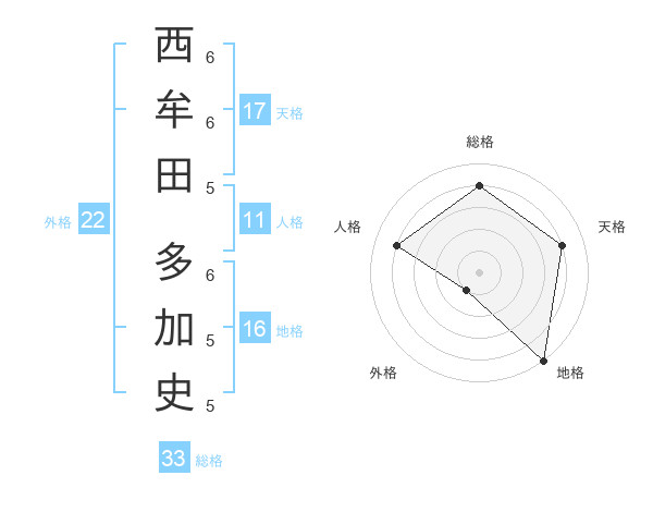 西牟田 多加史さんを姓名の画数から五運を鑑定