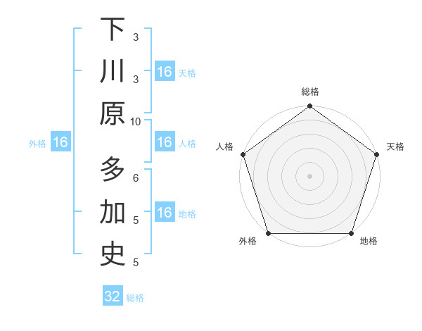 下川原 多加史さんを姓名の画数から五運を鑑定