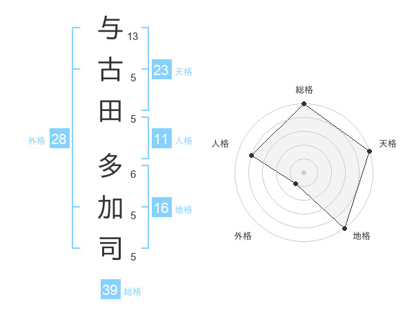 与古田 多加司さんを姓名の画数から五運を鑑定