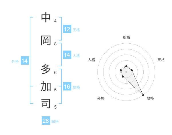 中岡 多加司さんの天格は12画の1点!