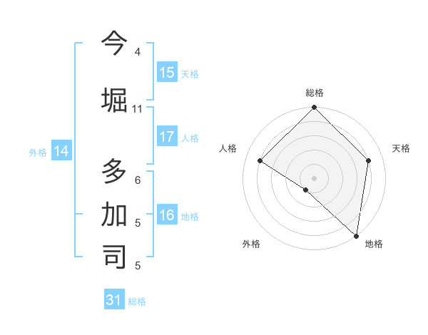 今堀 多加司さんを姓名の画数から五運を鑑定