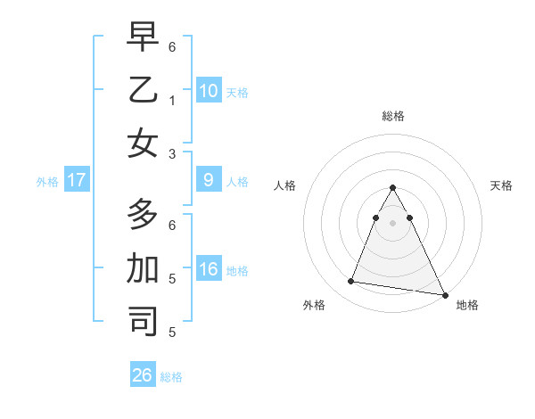 早乙女 多加司さんを姓名の画数から五運を鑑定