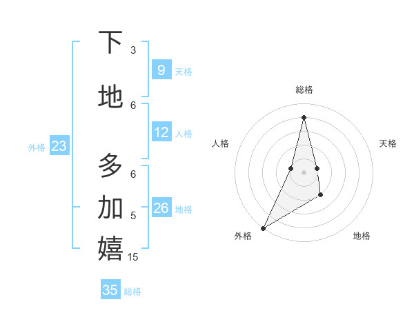 下地 多加嬉さんを姓名の画数から五運を鑑定