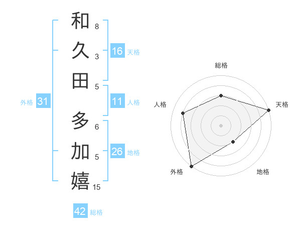 和久田 多加嬉さんを姓名の画数から五運を鑑定
