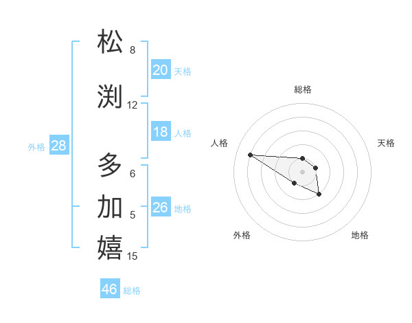 松渕 多加嬉さんを姓名の画数から五運を鑑定