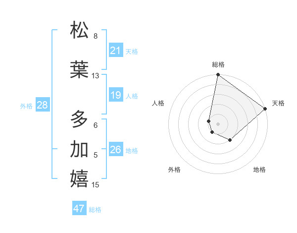 松葉 多加嬉さんの外格は28画の1点!