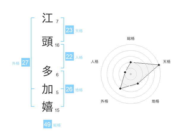 江頭 多加嬉さんを姓名の画数から五運を鑑定