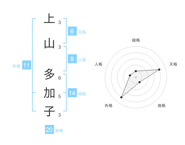 上山 多加子さんの外格は11画の4点!