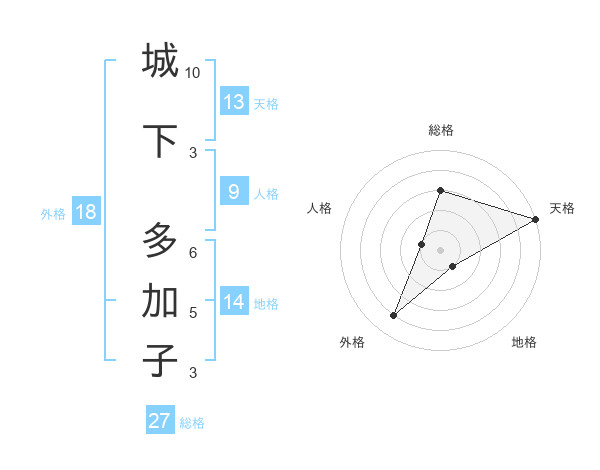 城下 多加子さんの天格は13画の5点!