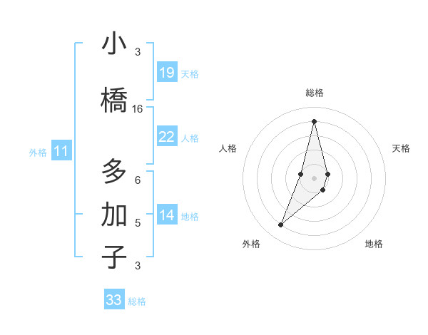 小橋 多加子さんの総格は33画の4点