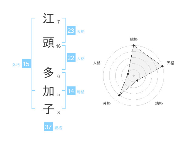 江頭 多加子さんを姓名の画数から五運を鑑定