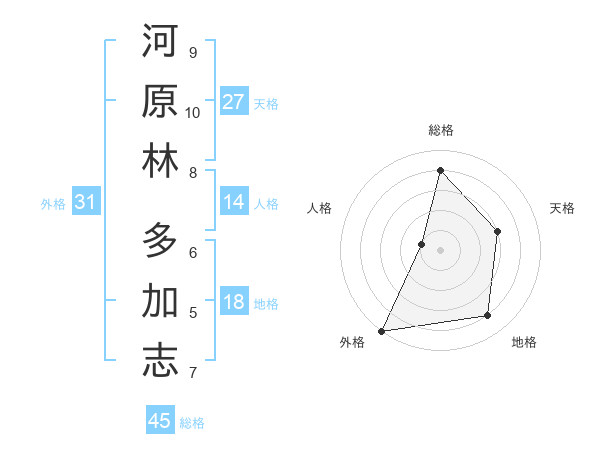 河原林 多加志さんを姓名の画数から五運を鑑定