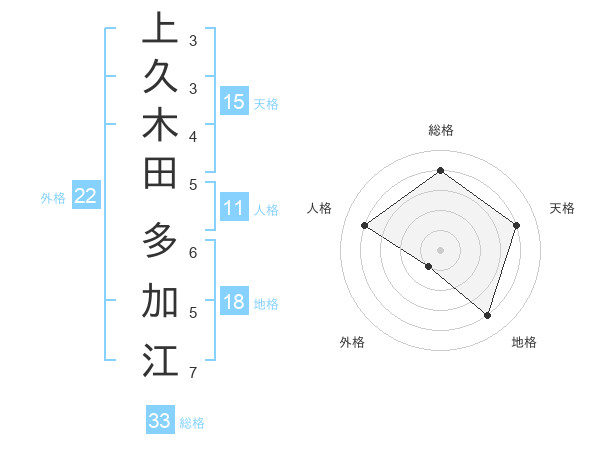 上久木田 多加江さんを姓名の画数から五運を鑑定