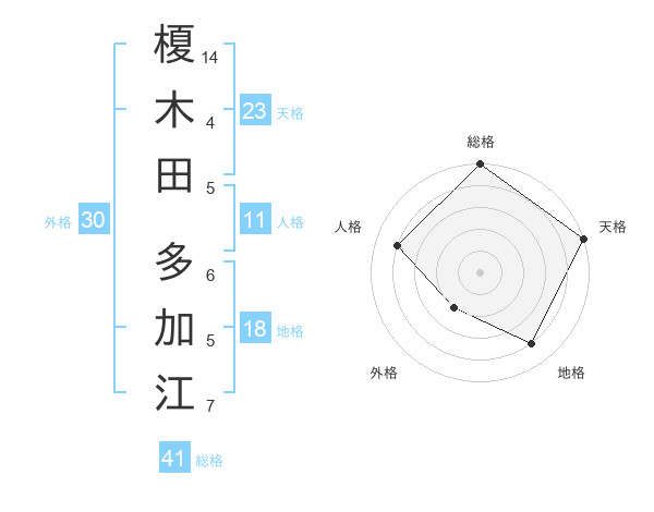 榎木田 多加江さんの総格は41画の5点!