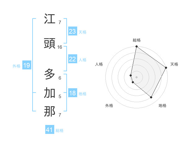 江頭 多加那さんを姓名の画数から五運を鑑定