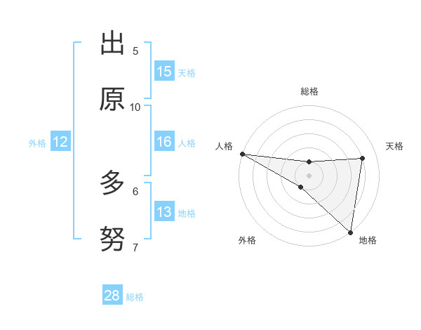 出原 多努さんの地格は13画の5点!