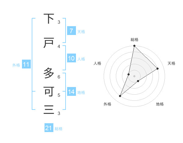 下戸 多可三さんの総格は21画の5点!