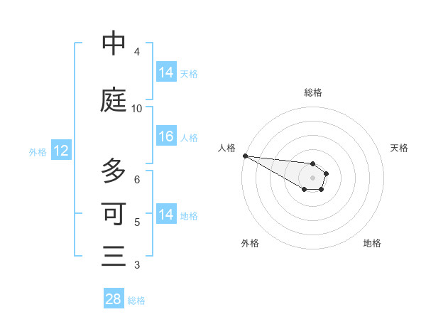 中庭 多可三さんを姓名の画数から五運を鑑定