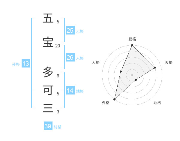 五宝 多可三さんを姓名の画数から五運を鑑定