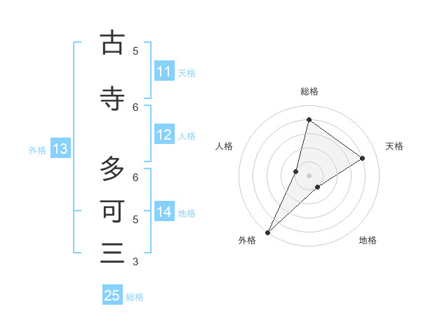 古寺 多可三さんを姓名の画数から五運を鑑定