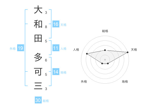 大和田 多可三さんを姓名の画数から五運を鑑定