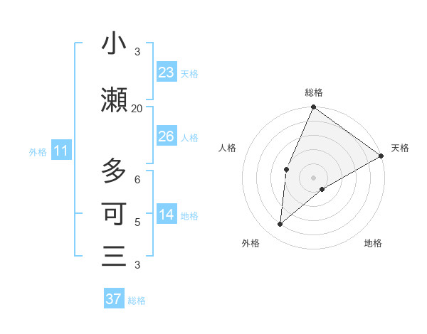 小瀬 多可三さんを姓名の画数から五運を鑑定