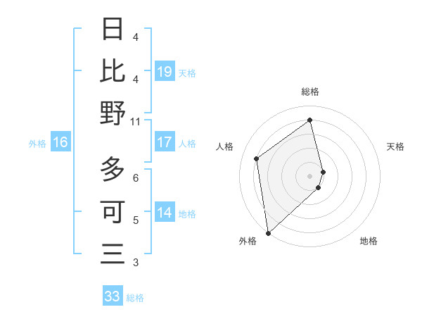 日比野 多可三さんの総格は33画の4点!