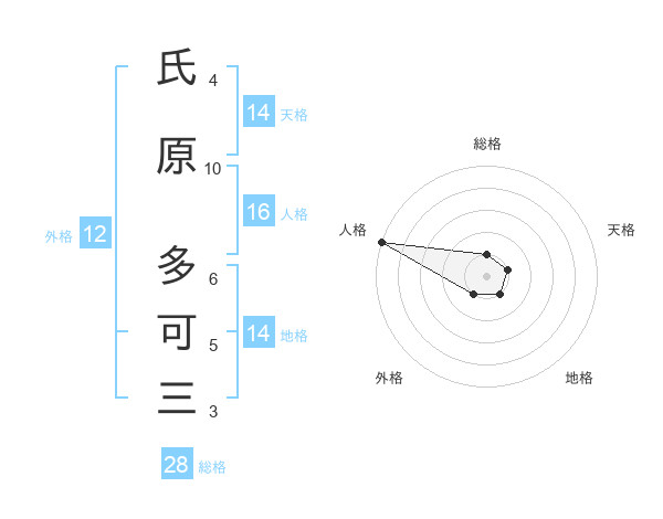 氏原 多可三さんを姓名の画数から五運を鑑定