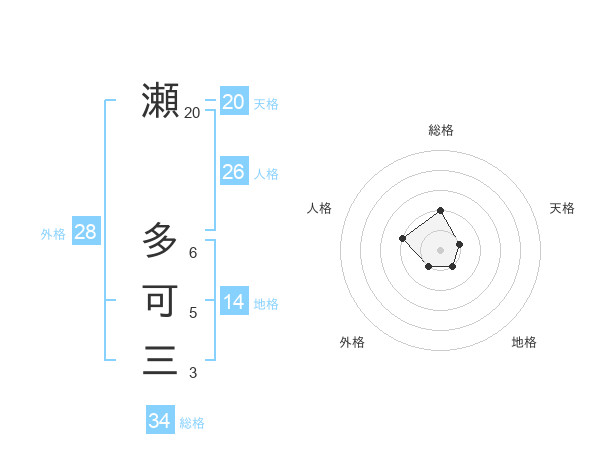 瀬 多可三さんの総格は34画の2点!