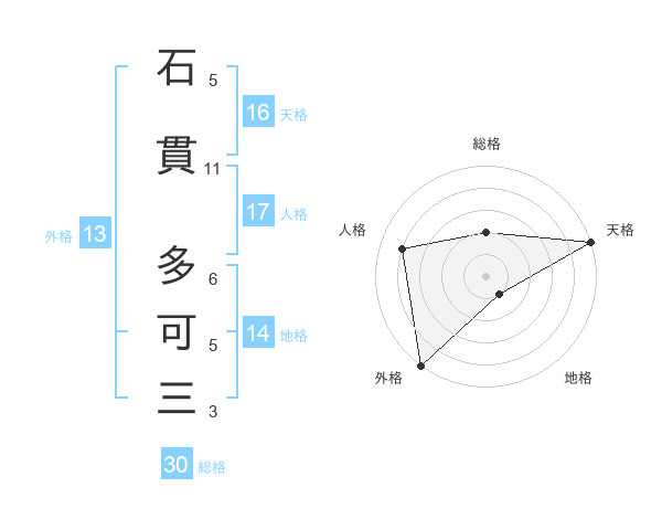 石貫 多可三さんを姓名の画数から五運を鑑定