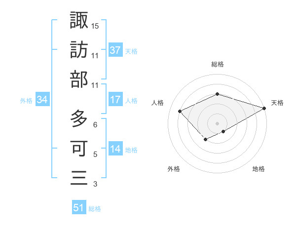 諏訪部 多可三さんの総格は51画の3点!