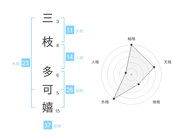 三枝 多可嬉さんを姓名の画数から五運を鑑定